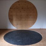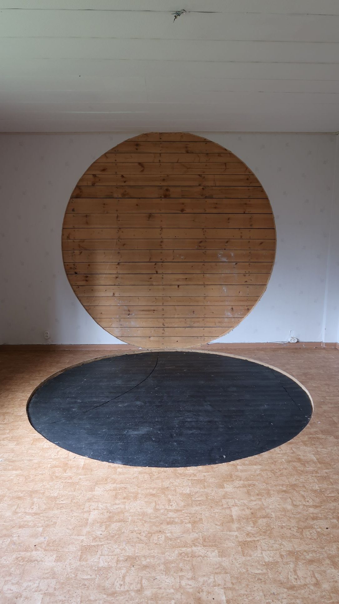 The contact point of the two circles in the work leads to the theme of the Rajatalo exhibition. Even though the ideas of the circles are geometrically perfect, they separate themselves from each other and from the space around them. The parallel borders and spaces can, depending on the viewer, be interpreted as interfaces of visual art, mind and a community.