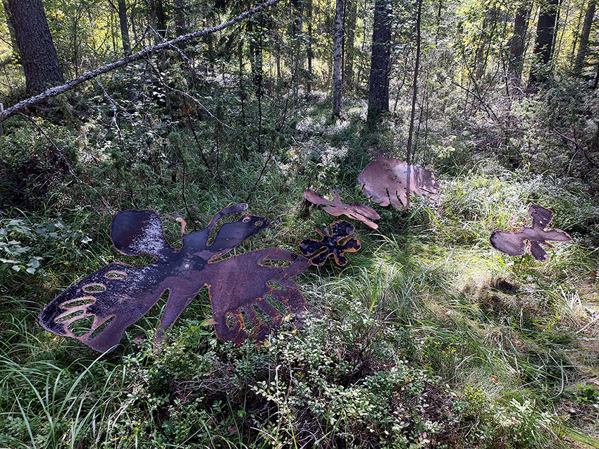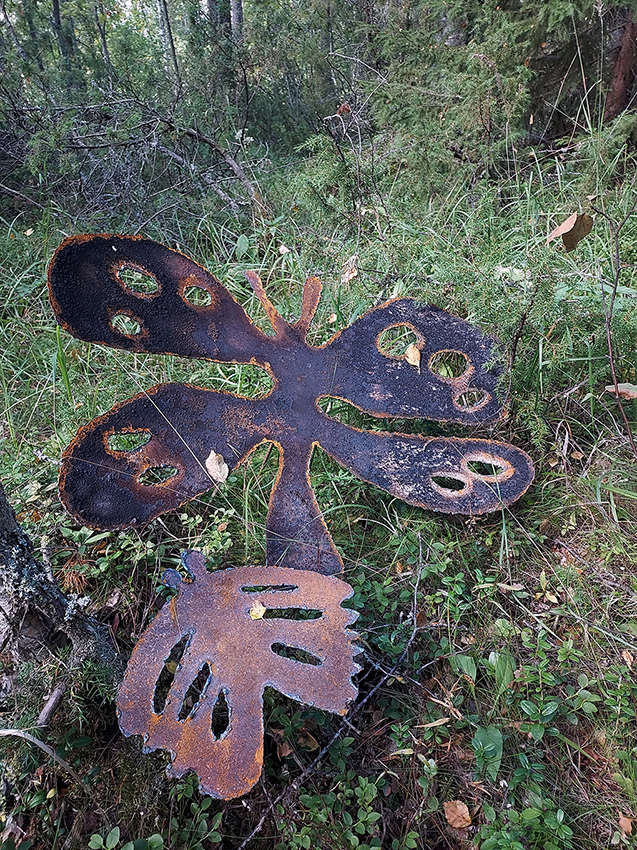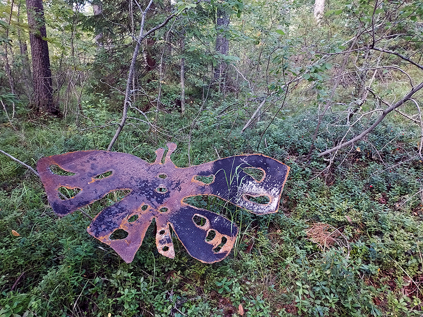 Perhoset kuuluvat luontoon ja metsään. Kierrätysmetallista leikatut perhoset ovat saaneet innoituksensa uhanalaisista perhoslajeista. Leikittelevä, kömpelö leikkausjälki tekee perhosista hassuja. Perhosten muuntautuminen koviksi ja niin pysyviksi, pysähtyneiksi objekteiksi innosti juhlistamaan elämän kauneutta ja hetkellisyyttä karnevaalin tavoin. Tähän tämä nyt tuli. Tänne jäädäkseen.