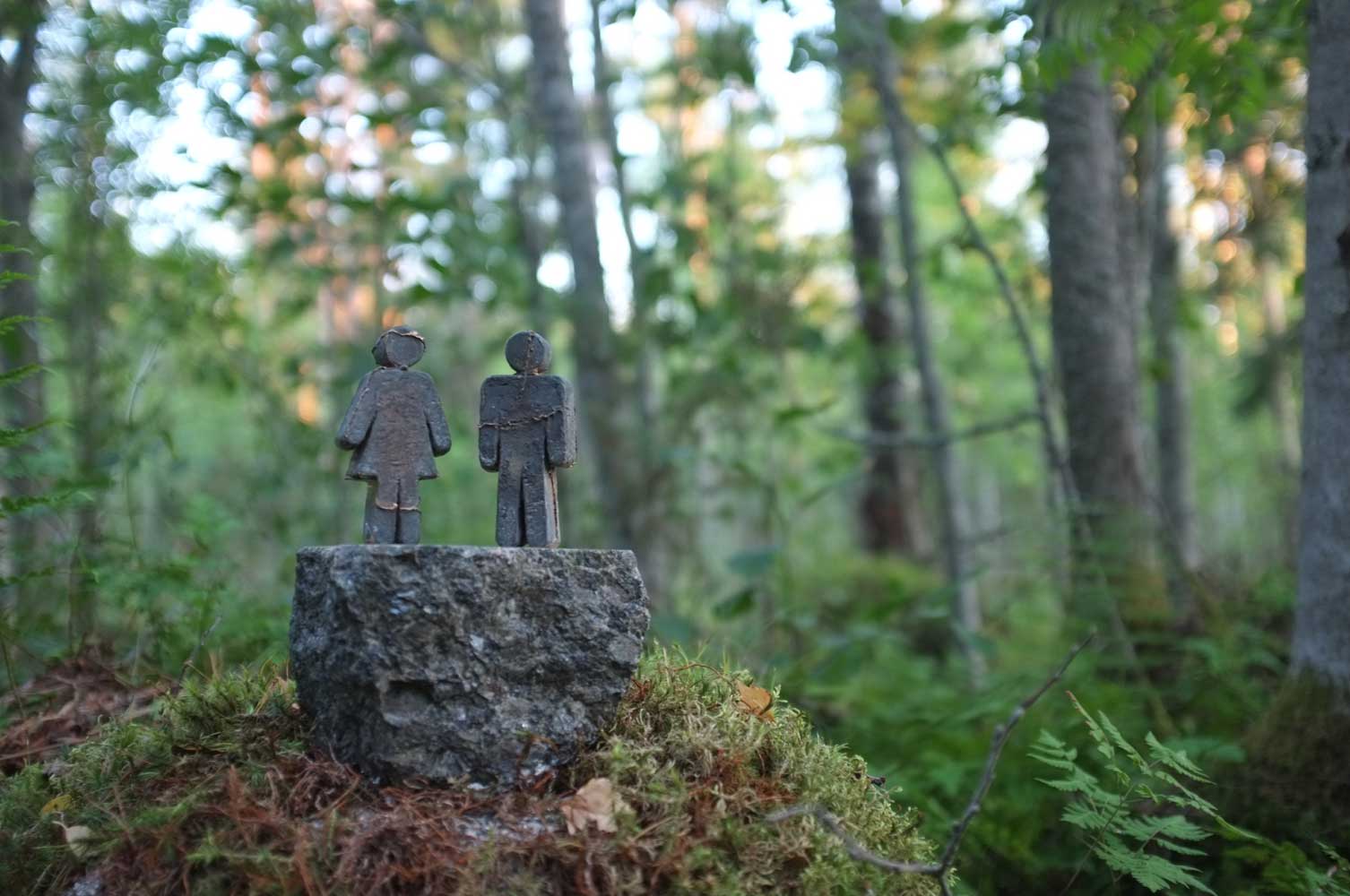Yksi vanha tapa patinoida pronssia on virtsata siihen. Niinpä teos on paikassa (eli metsän reunassa), missä ihmiset voivat virtsata sen päälle. Figuurit seisovat luonnon keskellä lähes huomaamattomina, mutta löydettävissä, muistuttamassa meitä jostain tärkeästä: lähimmäisenrakkaudesta.